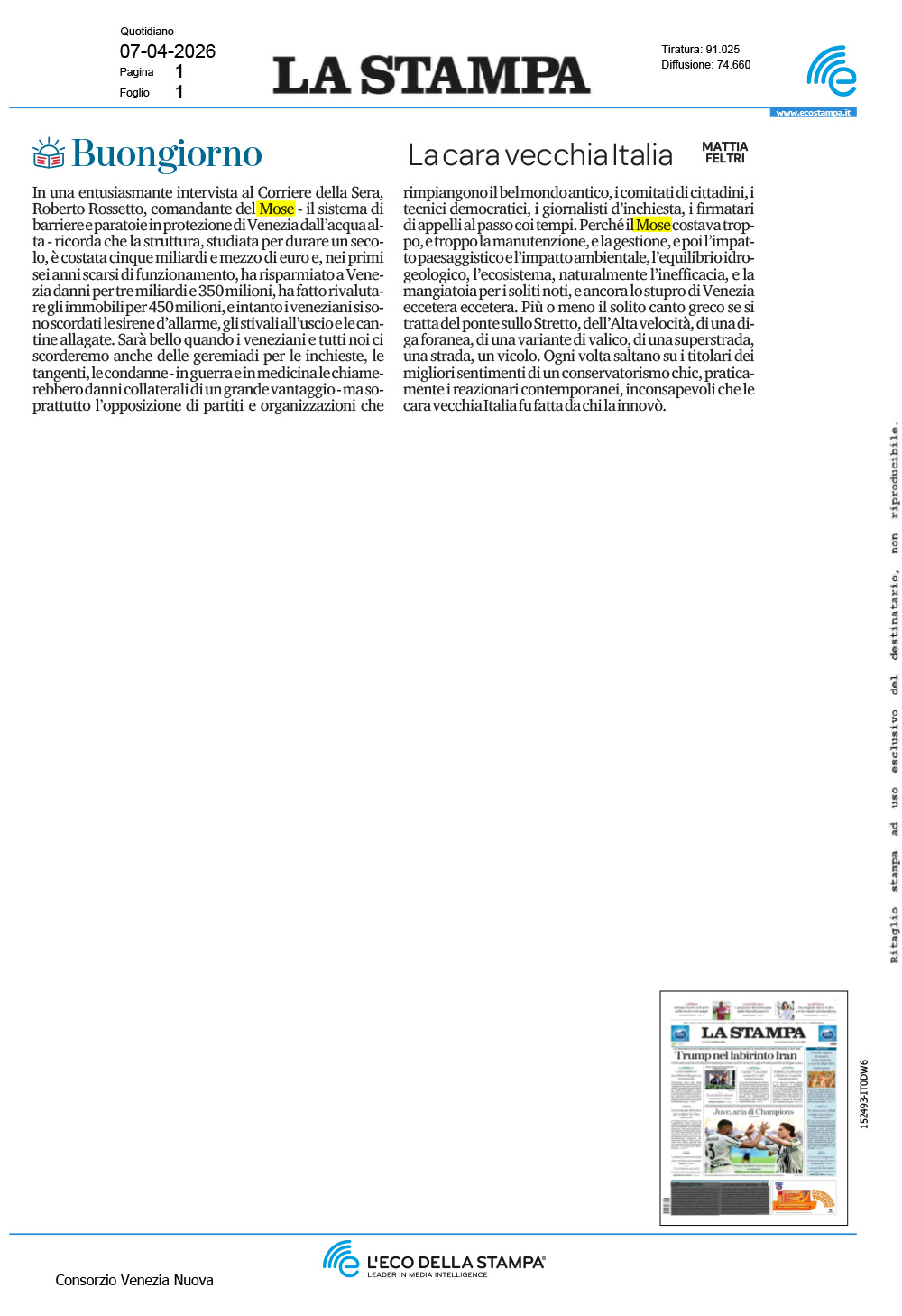 Commento all’intervista a Roberto Rossetto pubblicata sul Corriere della Sera il 5 aprile 2026.